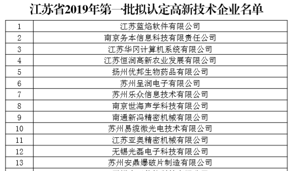 2019年11月17號,我公司順利通過江蘇省2019年第一批高新技術(shù)企業(yè)認定。